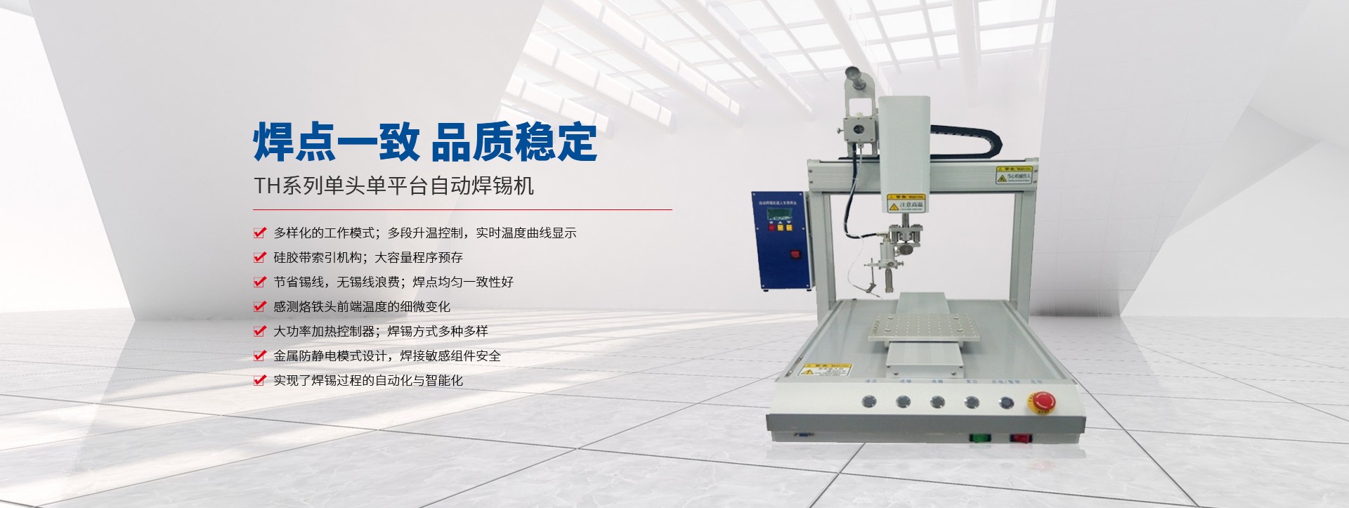 蘇州拓航機械設備有限公司成立于2016年,是一家集研發、制造、銷售及技術服務于一體的自動化設備生產廠家,主營產品有自動螺絲機、自動焊錫機、自動點膠機、自動灌膠機 脈沖熱壓機,及各類型的非標自動化設備。